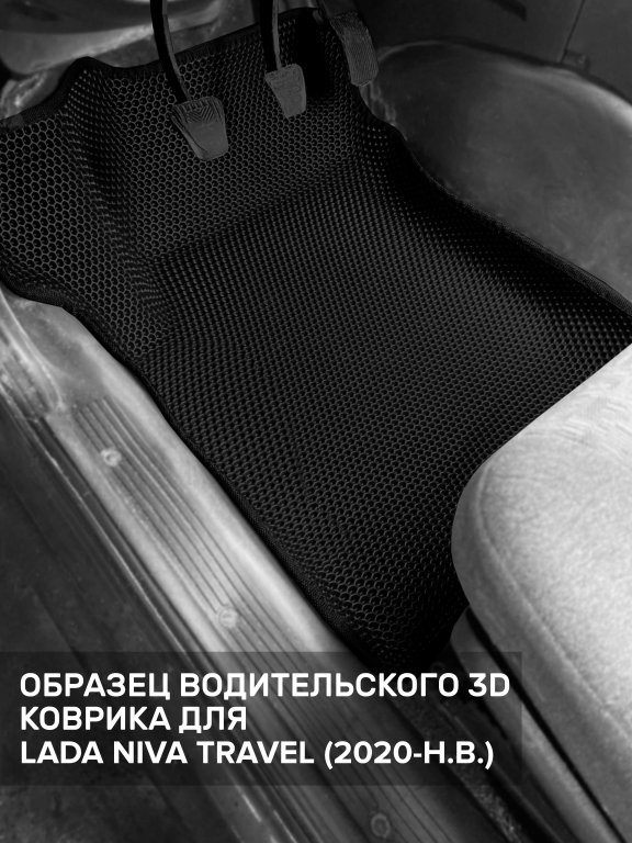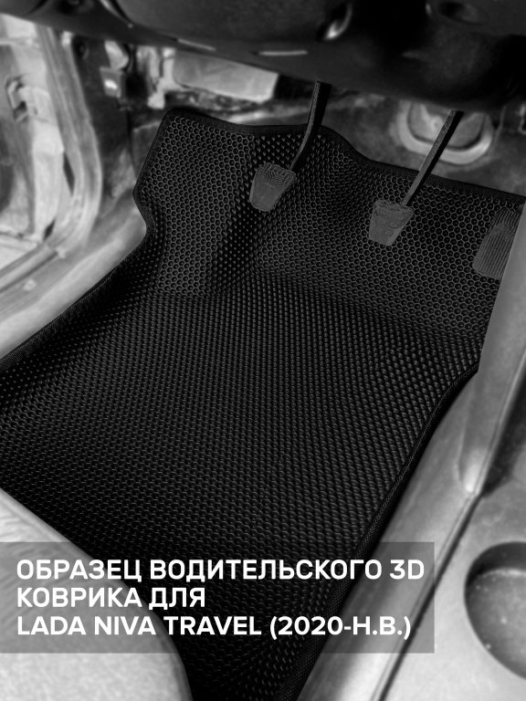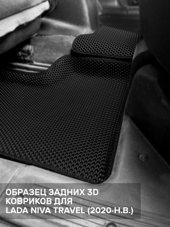 Автомобильные 3д коврики для Lada Niva Travel (2020-н.в.) в салон авто и багажник сделаны из инновационного полимерного материала EVA, изысканная структура в виде ячеек не дает воде, пыли и снегу разлетаться по салону машины и багажнику. 3д коврики зафиксированы на полу определенными клипсами, соответствующими Lada Niva Travel (2020-н.в.), и не двигаются в процессе езды.
