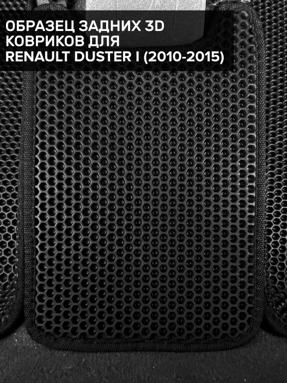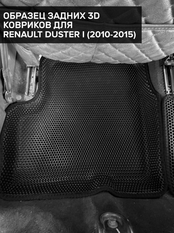 Автомобильные 3д коврики для Renault Duster I (2010-2015) в салон авто и багажник сделаны из инновационного полимерного материала EVA, изысканная структура в виде ячеек не дает воде, пыли и снегу разлетаться по салону машины и багажнику. 3д коврики зафиксированы на полу определенными клипсами, соответствующими Renault Duster I (2010-2015), и не двигаются в процессе езды.